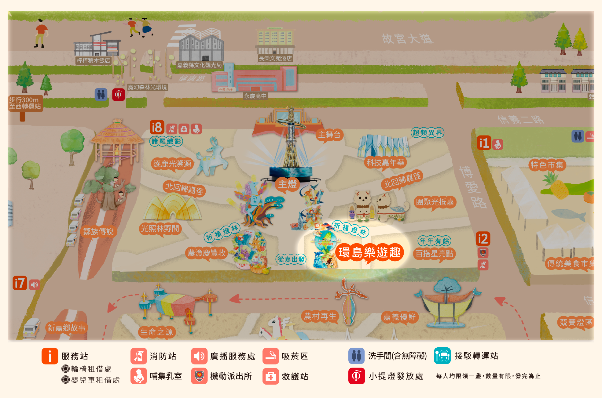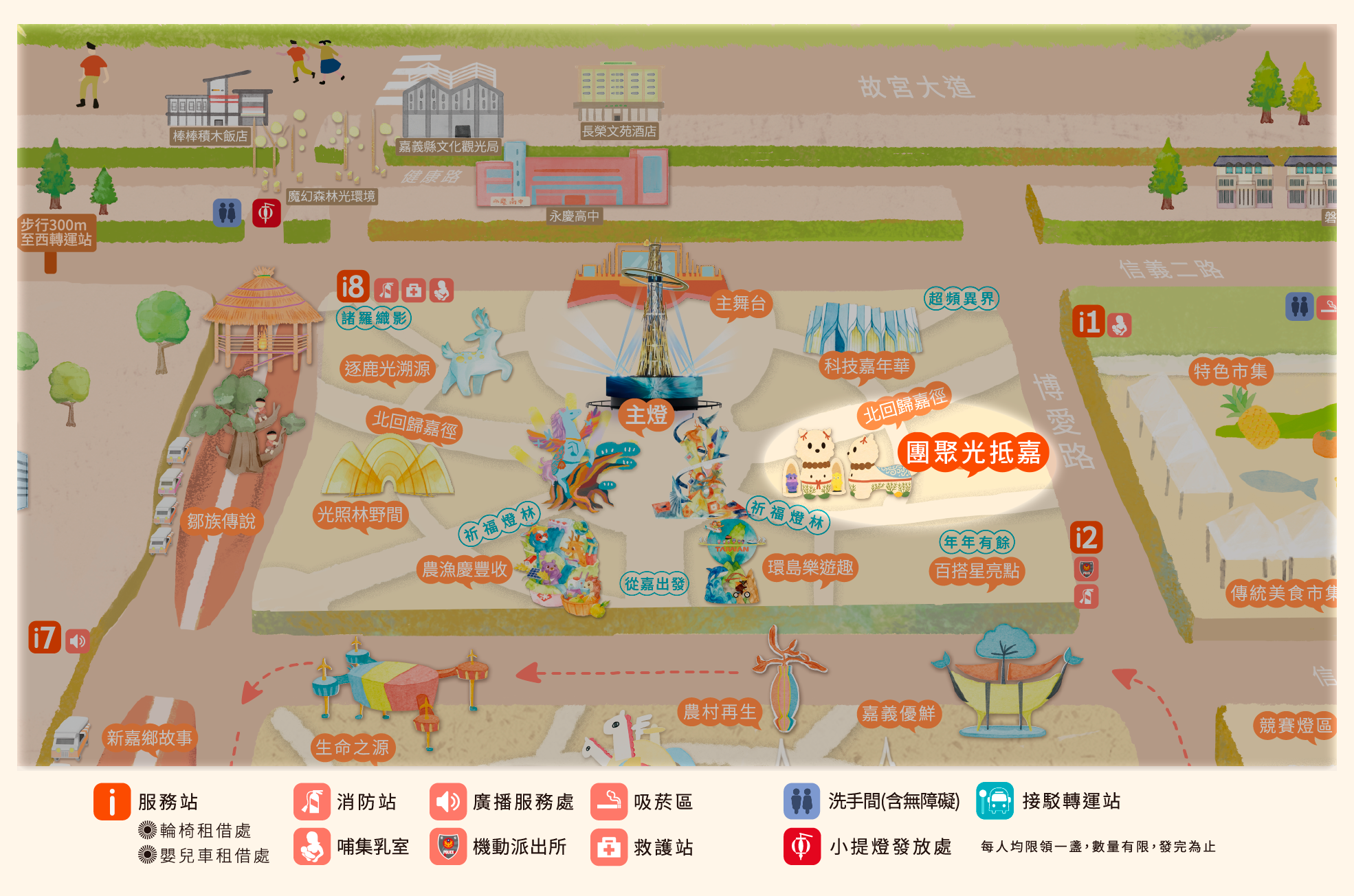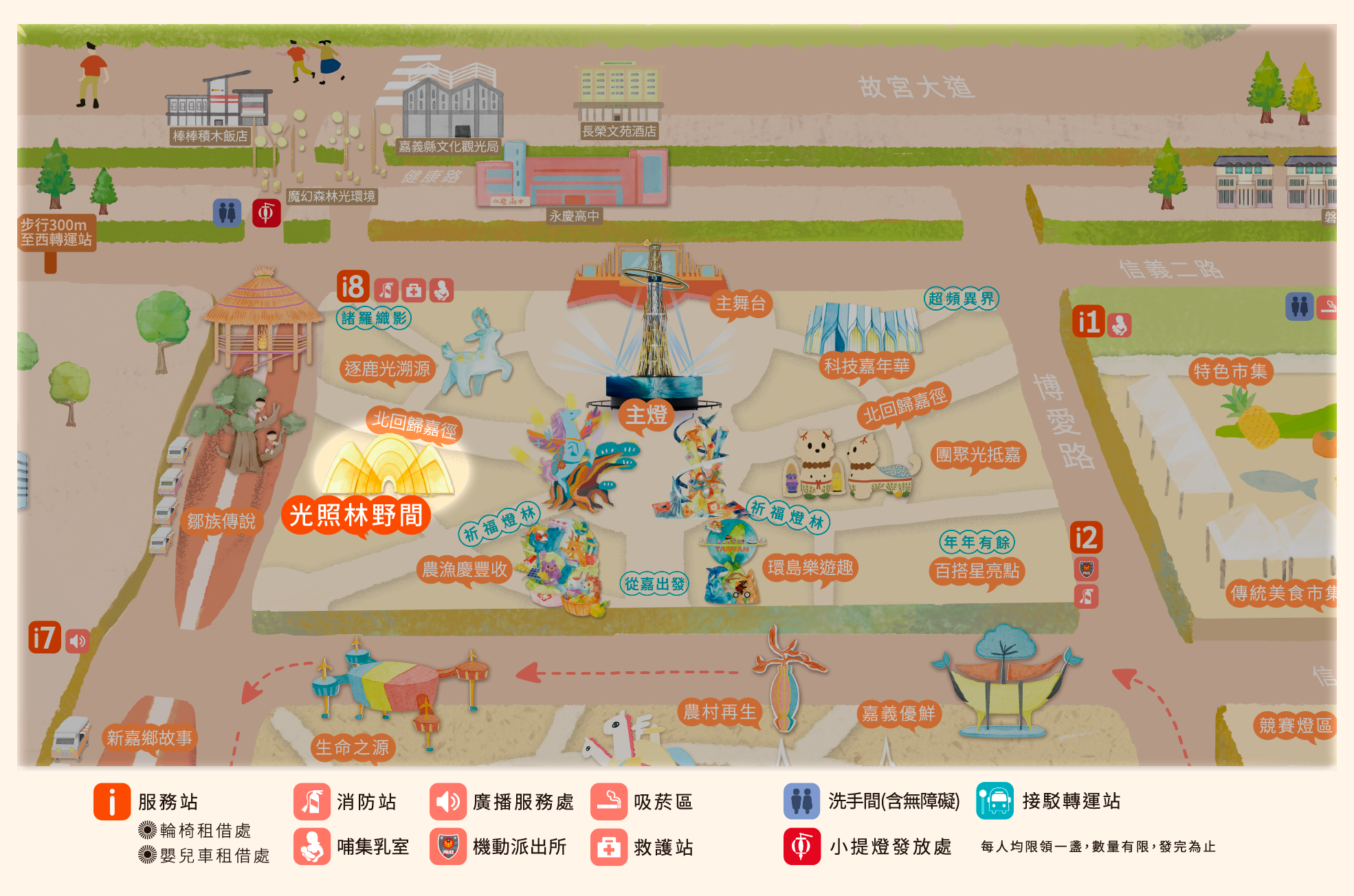 • 本燈區致敬嘉義百年林業史與木藝文化。