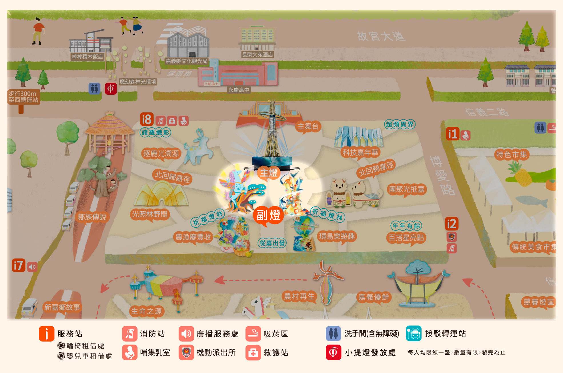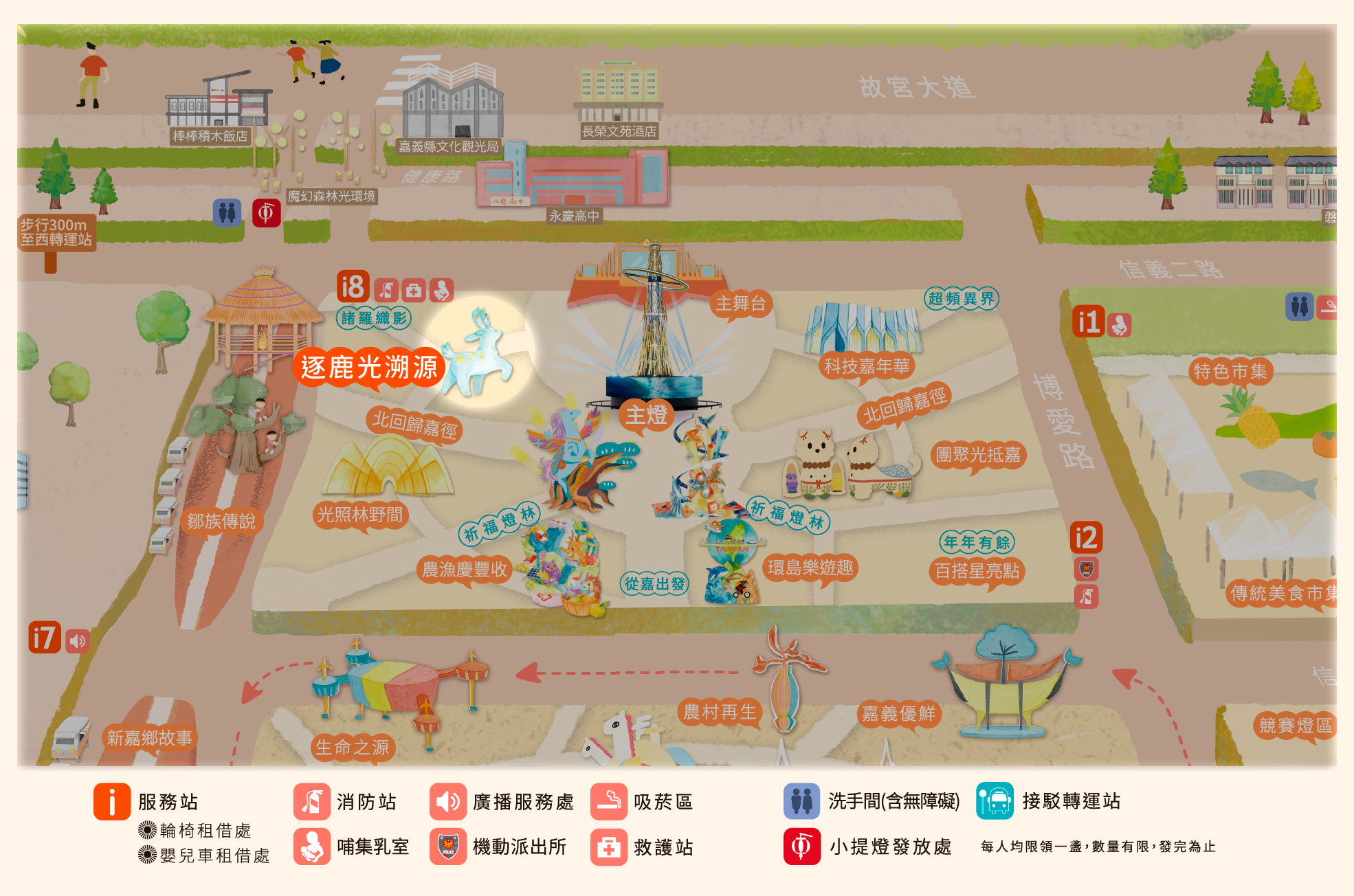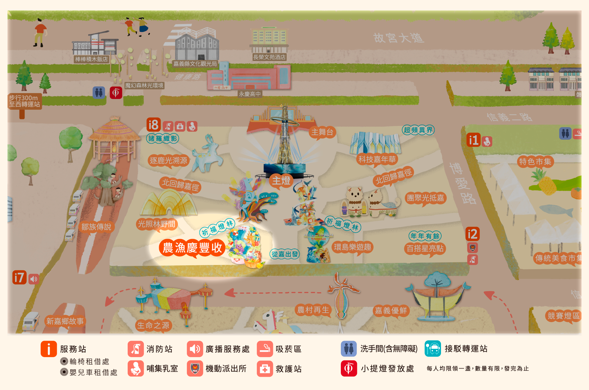 • 本燈區致敬嘉義百年林業史與木藝文化。