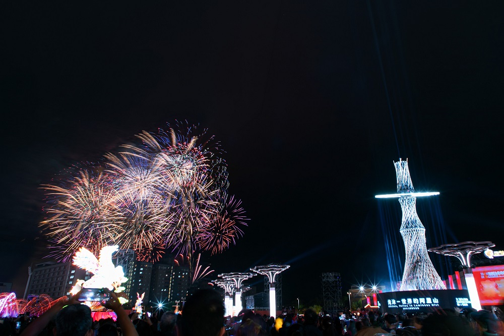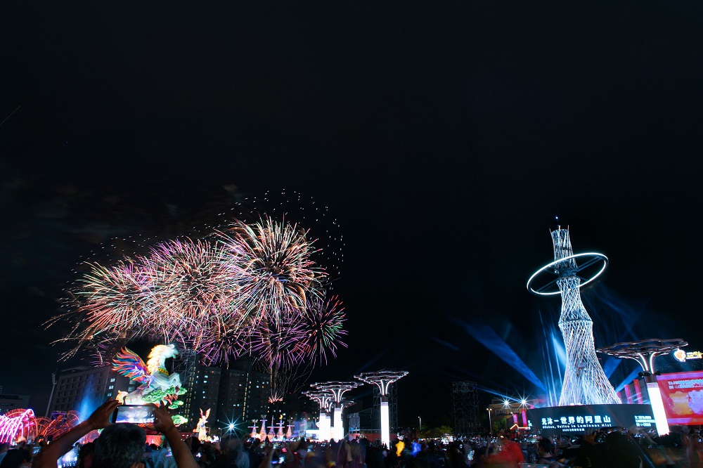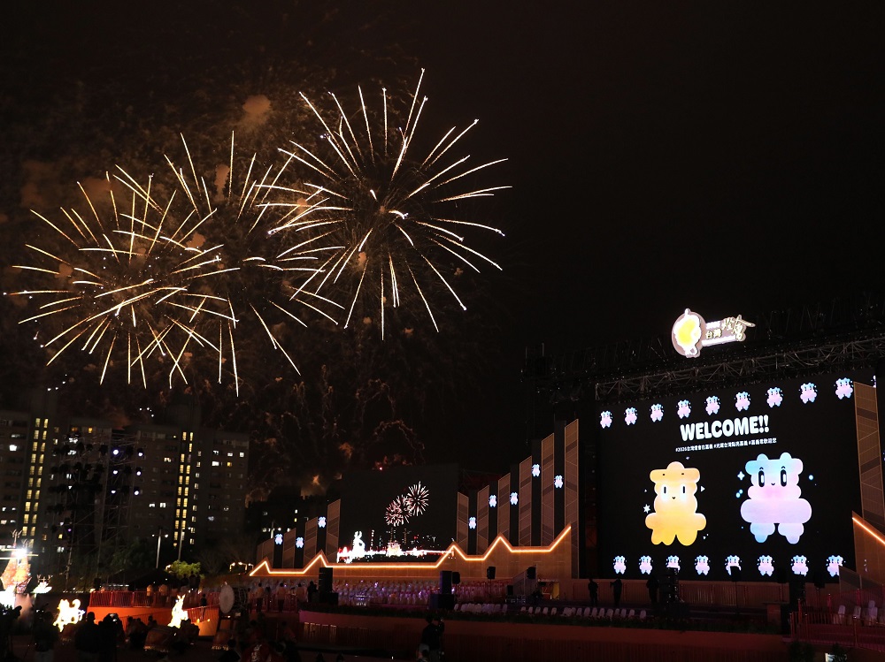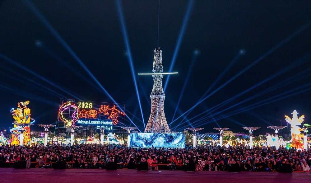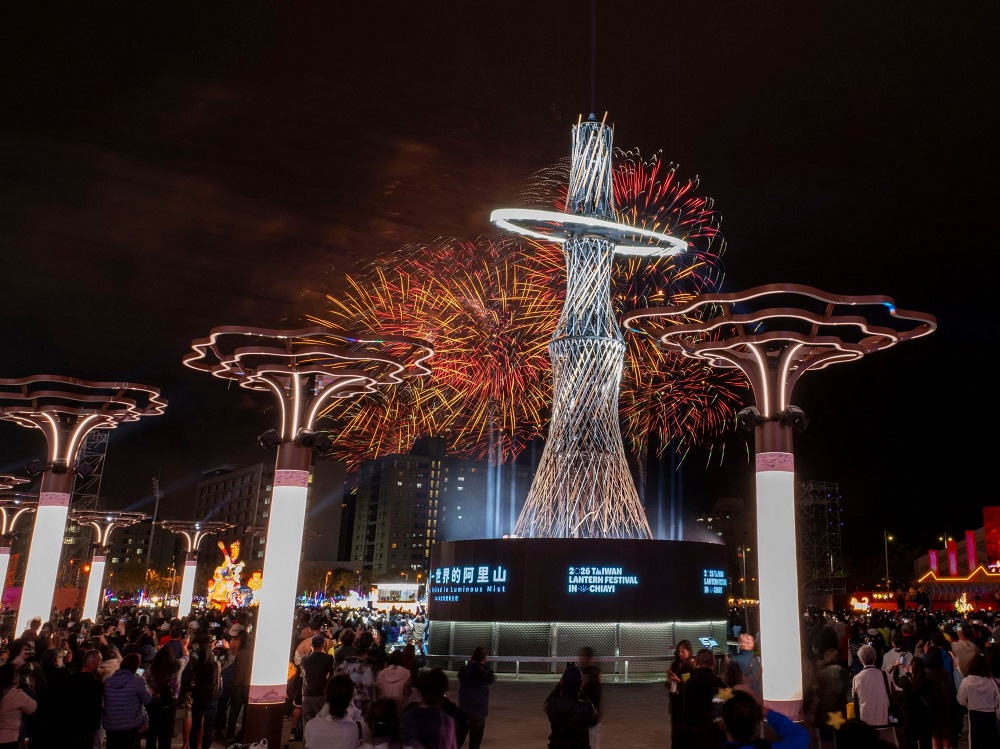 The main lantern “Alishan, Veiled in Luminous Mist” was jointly created by artists Yao Chung‑Han, Chen Wei‑Chih, and Lu Yen‑Chen. Standing 21 meters tall, it incorporates imagery of the Alishan sacred tree, the sun, and drifting mist, symbolizing the coexistence and cyclical harmony of light, water, and wood. As the main lantern performance and a ten‑minute fireworks show lit up the night sky, waves of cheers echoed throughout the venue, marking a brilliant opening to the 2026 Taiwan Lantern Festival.