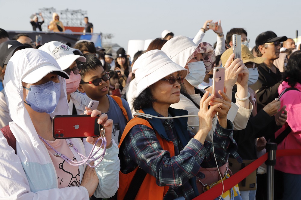 The Chiayi County Bureau of Culture and Tourism held an unveiling press event today (8th), attracting festival visitors eager to catch a first glimpse of the spectacular mechanical flying white horse and the acrobatic circus performers. County Magistrate Weng Chang‑liang attended the event and stated that the Taiwan Lantern Festival continues to amaze audiences. Following last night’s Team Taiwan Parade, which reached a peak of excitement, the upcoming Flying White Horse Show is expected to spark another wave of enthusiasm.