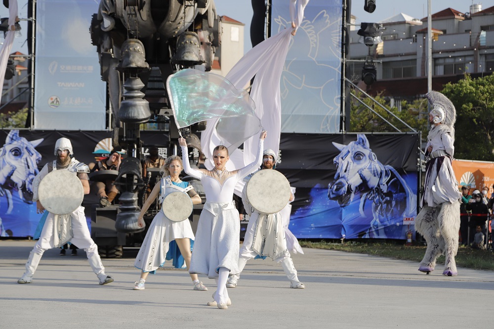 The mechanical art circus troupe Planète Vapeur from France is set to make a stunning appearance at the 2026 Taiwan Lantern Festival, bringing its signature work, the Flying White Horse Show, to Chiayi for the first time. Featuring a massive mechanical installation combined with contemporary circus vocabulary, live music, and light‑and‑sound technology, the performance unveils a grand and fantastical artistic spectacle against the city’s night sky.