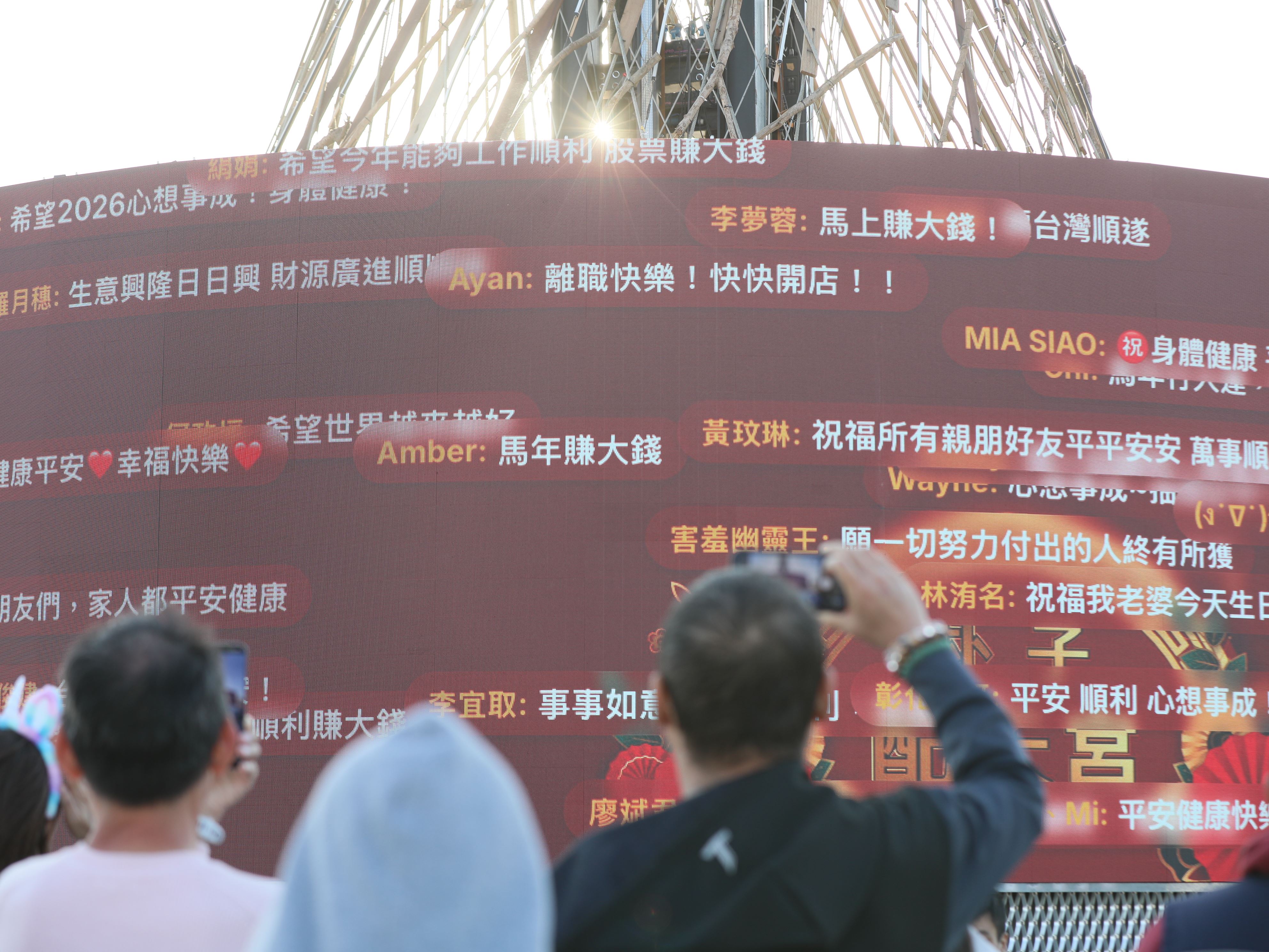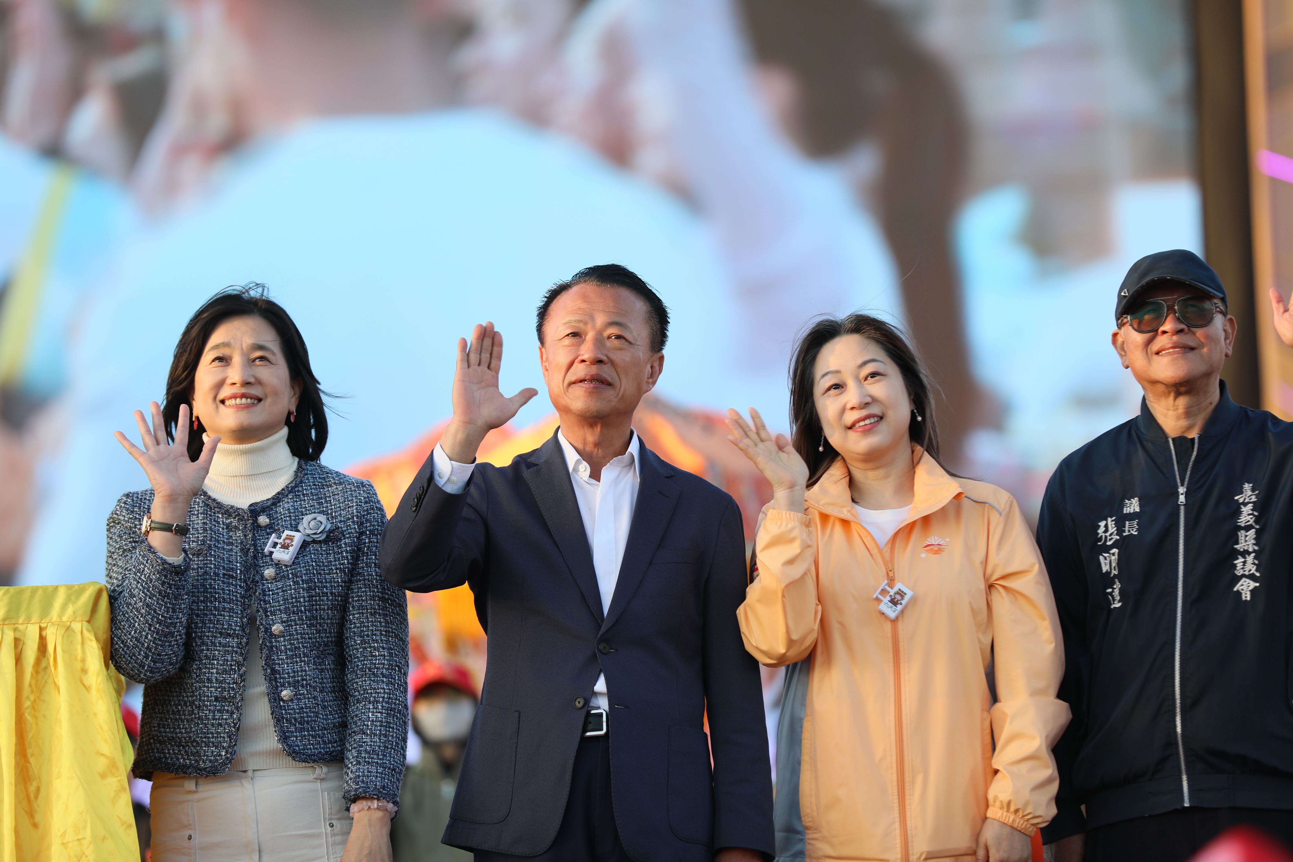 翁章梁感謝媽祖聽到他的心聲,庇佑燈會開幕及遊行順利,今天邀請媽祖賞燈,很多人把願望打在主燈牆上,希望媽祖庇佑完成願望,也保佑嘉義轉型成功,希望台灣的光可以一直點亮嘉義。