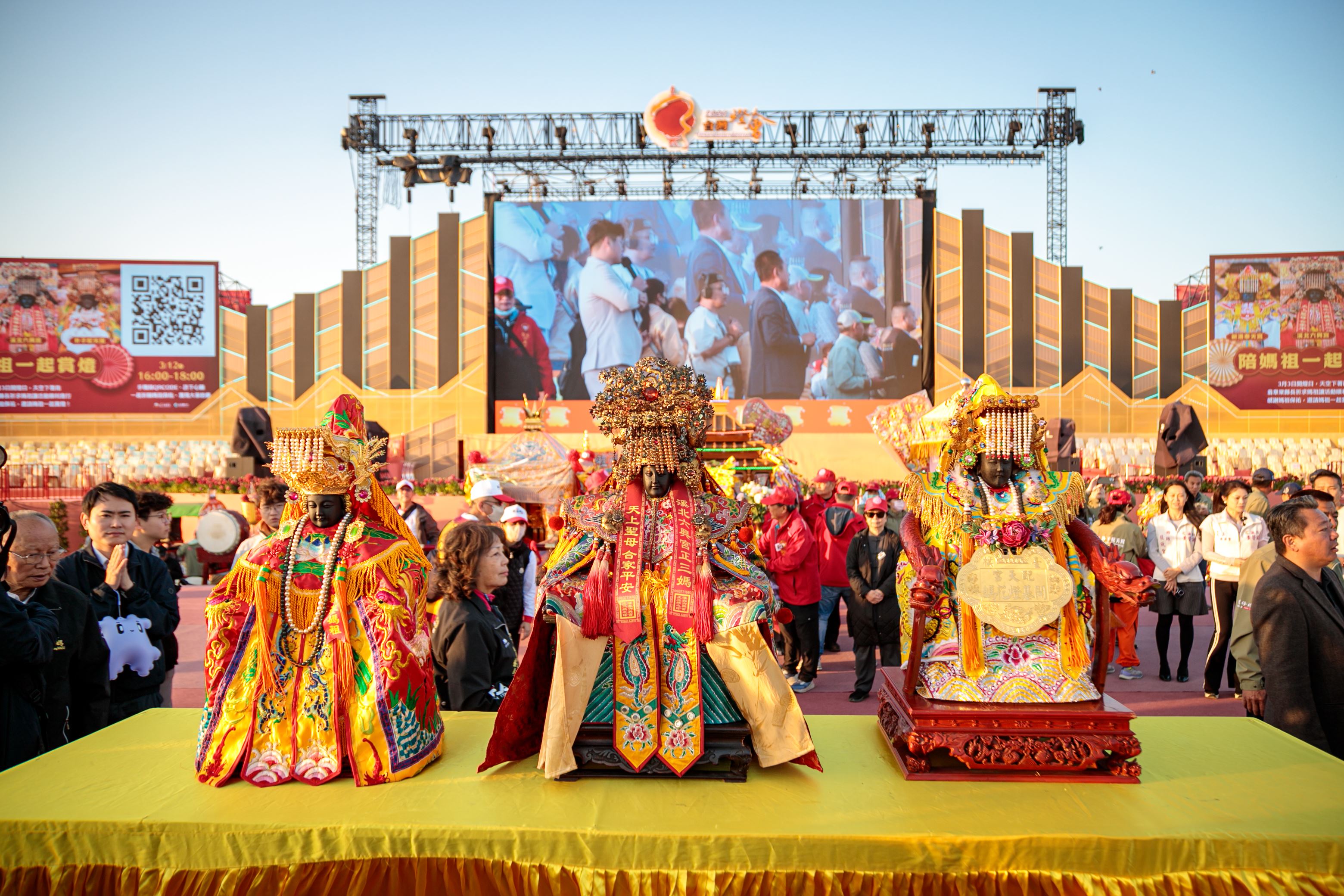 翁縣長偕夫人劉莉英、觀光署長陳玉秀、立委蔡易餘、陳冠廷、議長張明達、副議長陳怡岳、奉天宮董事長何達煌、配天宮董事長蔡承宗、六興宮主委江筱芃,以及地方各級民代,見證三位媽祖安座、世紀同框的時刻。