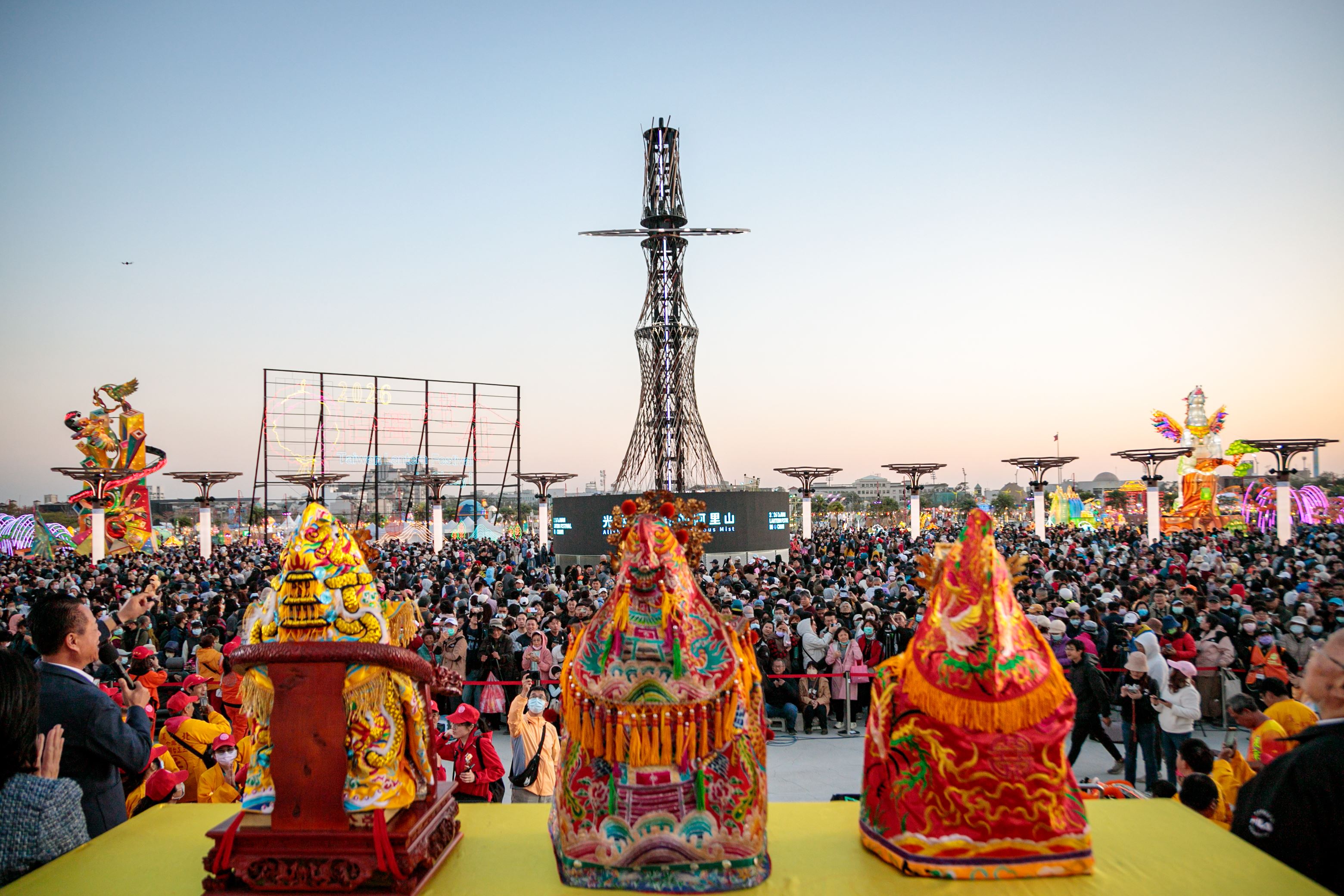 2026台灣燈會開燈日前連日陰雨,嘉義縣府團隊十分擔心天候影響活動,縣長翁章梁奔走廟宇,誠心向媽祖祈求,當日下午雨勢停歇、天氣轉好,燈會順利展開,為表達感謝之意,縣府邀新港奉天宮、溪北六興宮及朴子配天宮媽祖今12日走進燈會,許多鄉親「陪媽祖一起賞燈」,不少人雙手合十祝禱,盼媽祖聽到心願。