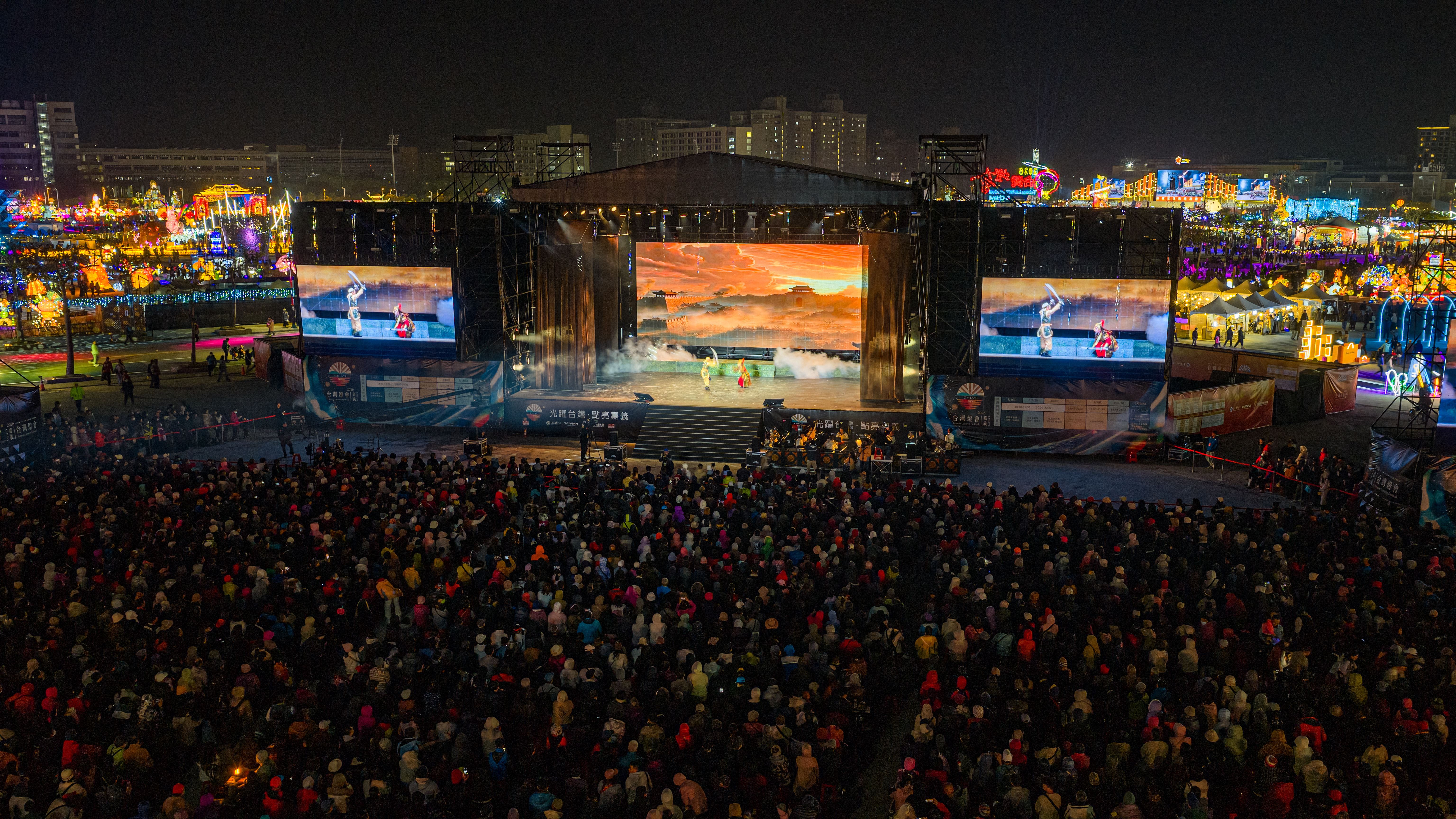 2026台灣燈會倒數3天,精彩節目持續登場!台灣歌仔戲代表團隊——明華園戲劇總團於今(13日)晚演出經典劇碼「花燈六百年」,以傳統戲曲結合現代舞台科技,呈現跨越六百年的花燈文化故事。