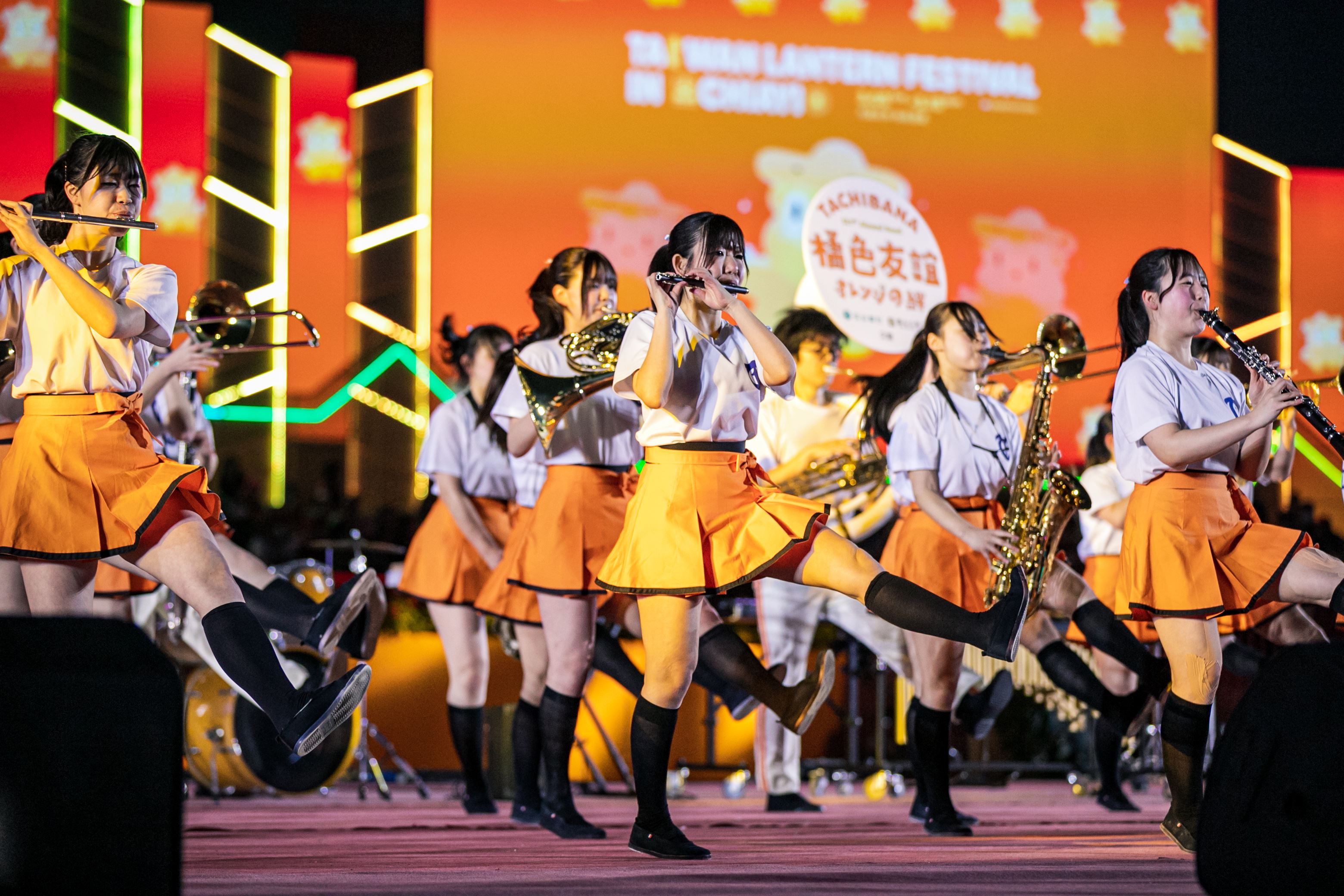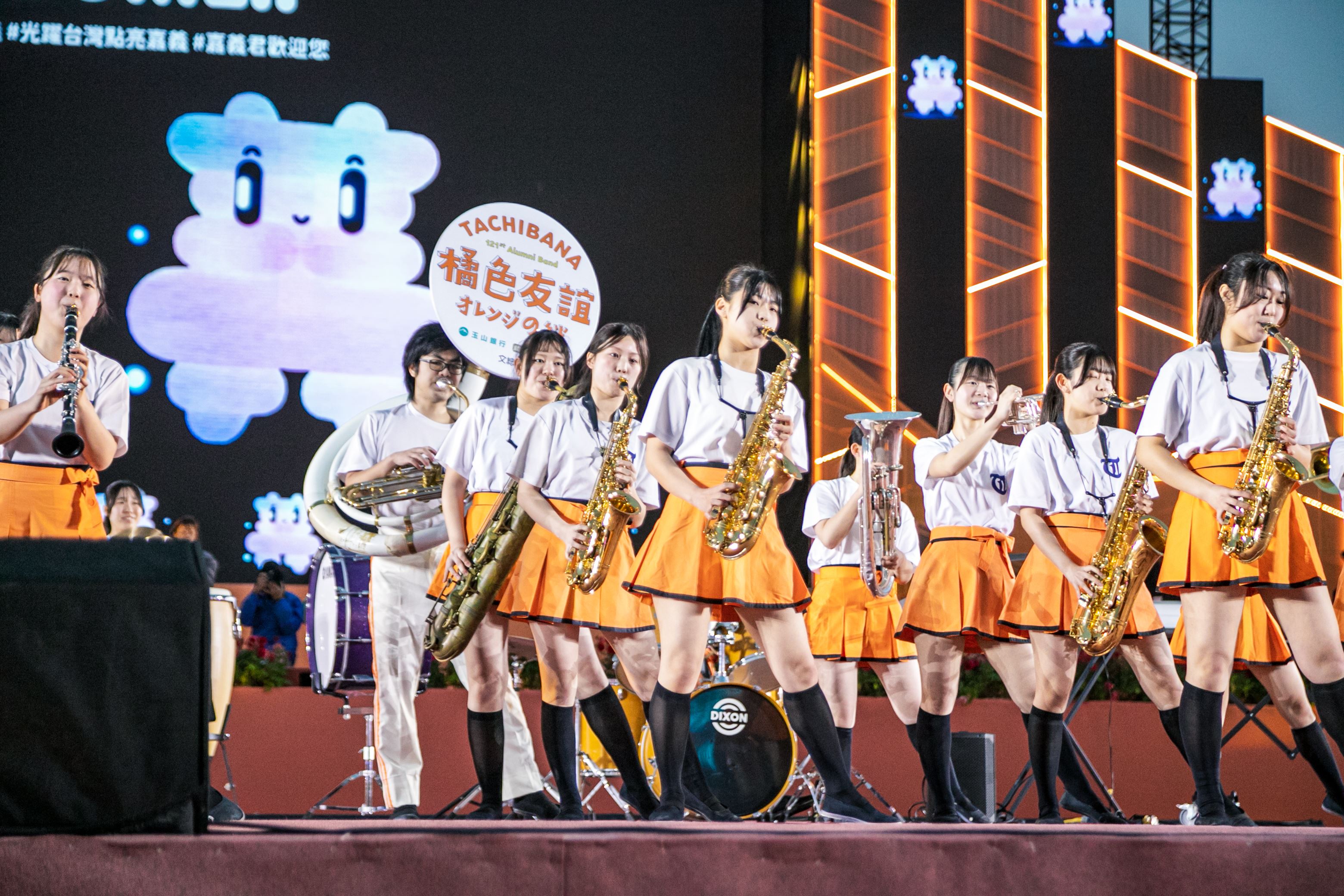 日本京都橘高校吹奏樂部26名121期校友樂團(下稱橘色惡魔121期)今(10)日晚間6點登上2026台灣燈會主舞台演出,吸引大批民眾提前卡位欣賞。嘉義縣長翁章梁也到場觀賞,他表示,自己過去只在電視上看過橘高校演出,今天是第一次現場欣賞,當初宣布邀請橘高校來嘉義時,許多人都非常期待。