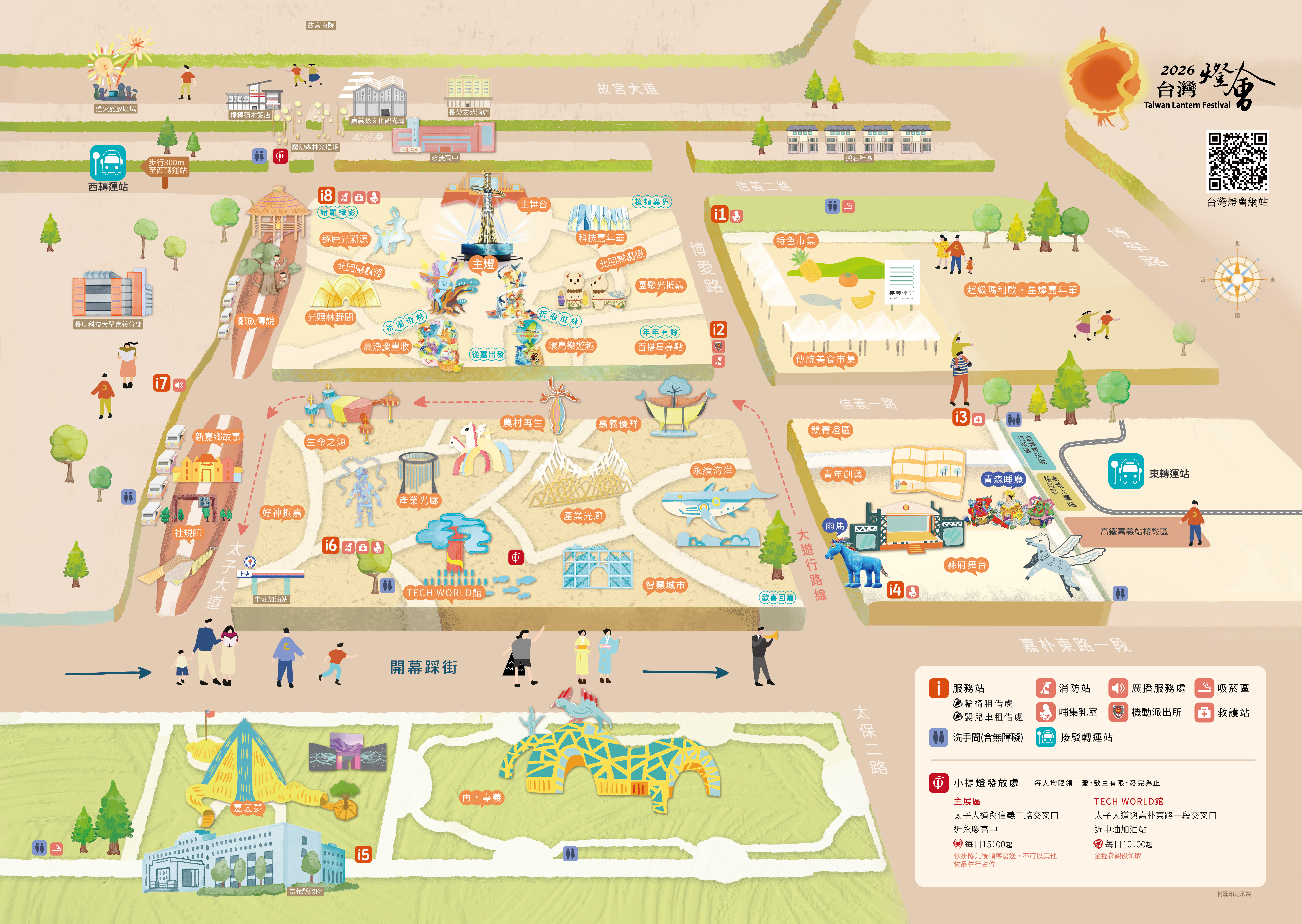 本屆燈會以「新嘉義」為核心概念,從地景風貌、人文脈絡與產業轉型出發,透過科技、藝術與社會共創,呈現城市創新蛻變的精彩歷程。策展規劃聚焦三大核心理念:「勇敢創新、文化自信、永續發展」,並延伸「展現山林風情、承載文化底蘊、邁向創新未來」三項主軸,串聯縣治特區、故宮南院、太子大道至府前廣場等場域,展現文化、產業與城市意象的融合。