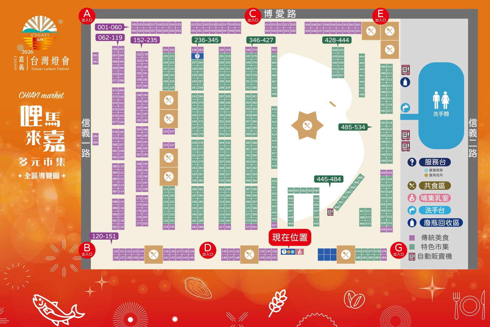 今年台灣燈會重返嘉義,以「哩馬來嘉」為主題,打造結合在地風⼟、創意與燈光藝術的多元市集。從全國經典美食⼩吃,到嘉義 19 個商圈的特⾊品牌、優鮮產品、觀光⼯廠、伴⼿禮,以及⽂創與青創品牌,應有盡有。太⼦⼤道旁還有 15 台以上特⾊餐⾞,讓你在賞燈之餘,也能⼤快朵頤。