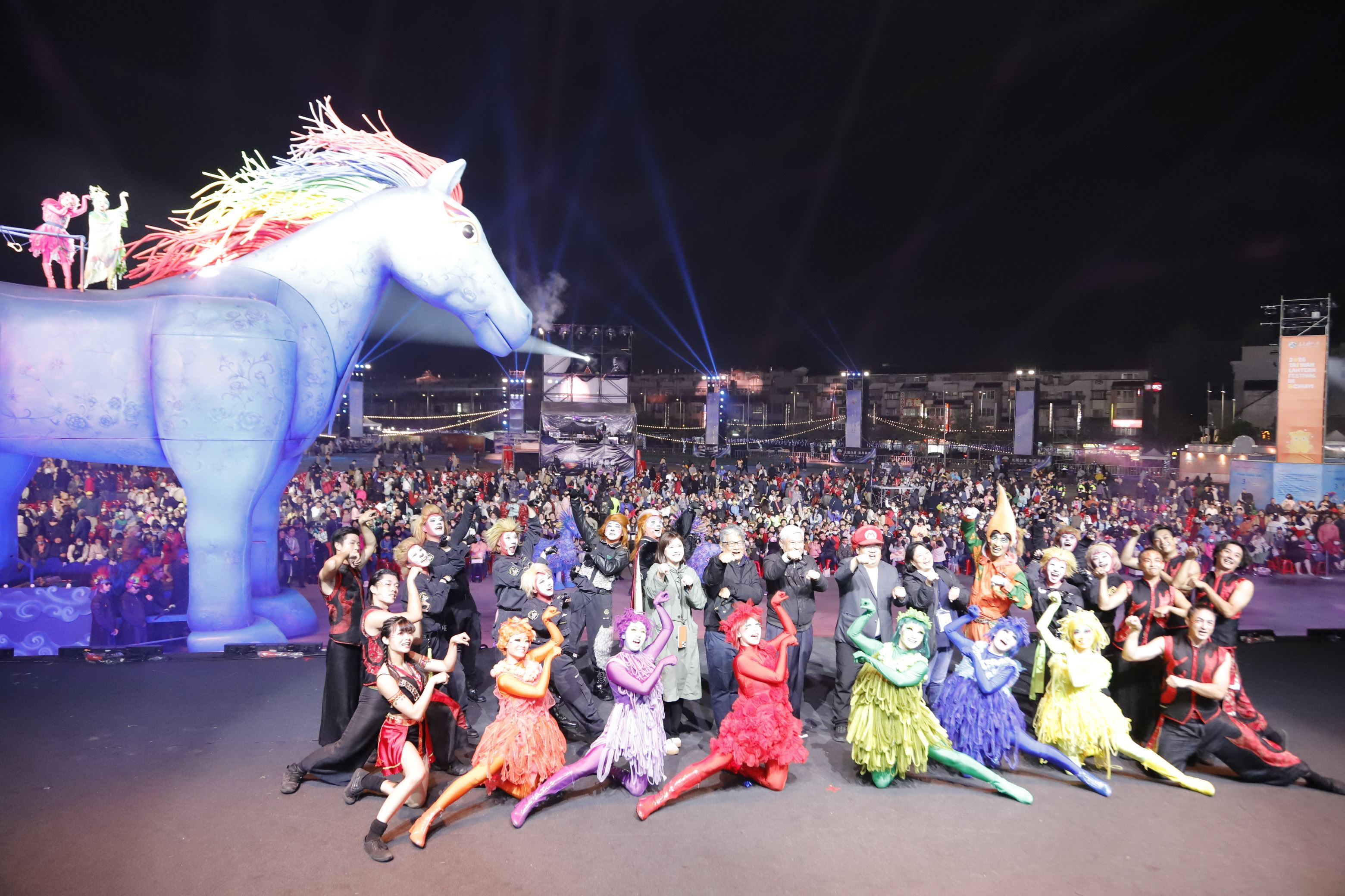 今5日晚間與紙風車董事長陳進財、創辦人李永豐到場觀賞演出,當雨馬昂首現身的瞬間,全場觀眾驚呼連連,手機燈海此起彼落,光影與歡呼交織成最動人的畫面,也成為本屆燈會期間最吸睛的焦點之一。