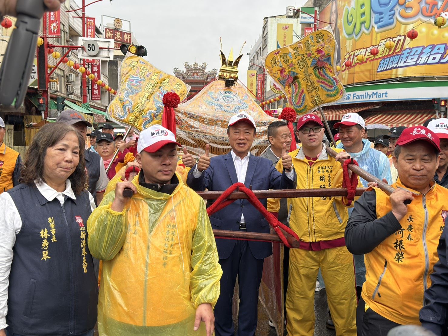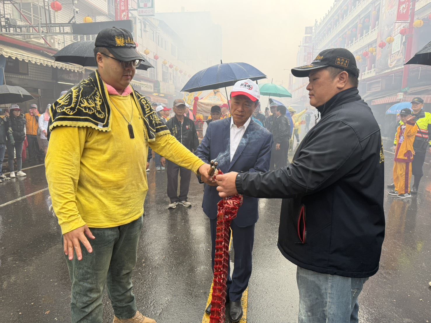 「2026台灣燈會在嘉義」今3日正式開燈,嘉義縣長翁章梁一早前往新港奉天宮參與「2026國際媽祖文化節元宵遶境起駕大典」團拜祈福,隨後前往溪北六興宮參加元宵遶境起駕團拜,翁章梁也向媽祖祈願今日雨勢停歇,讓下午踩街遊行及晚間開燈儀式順利進行。