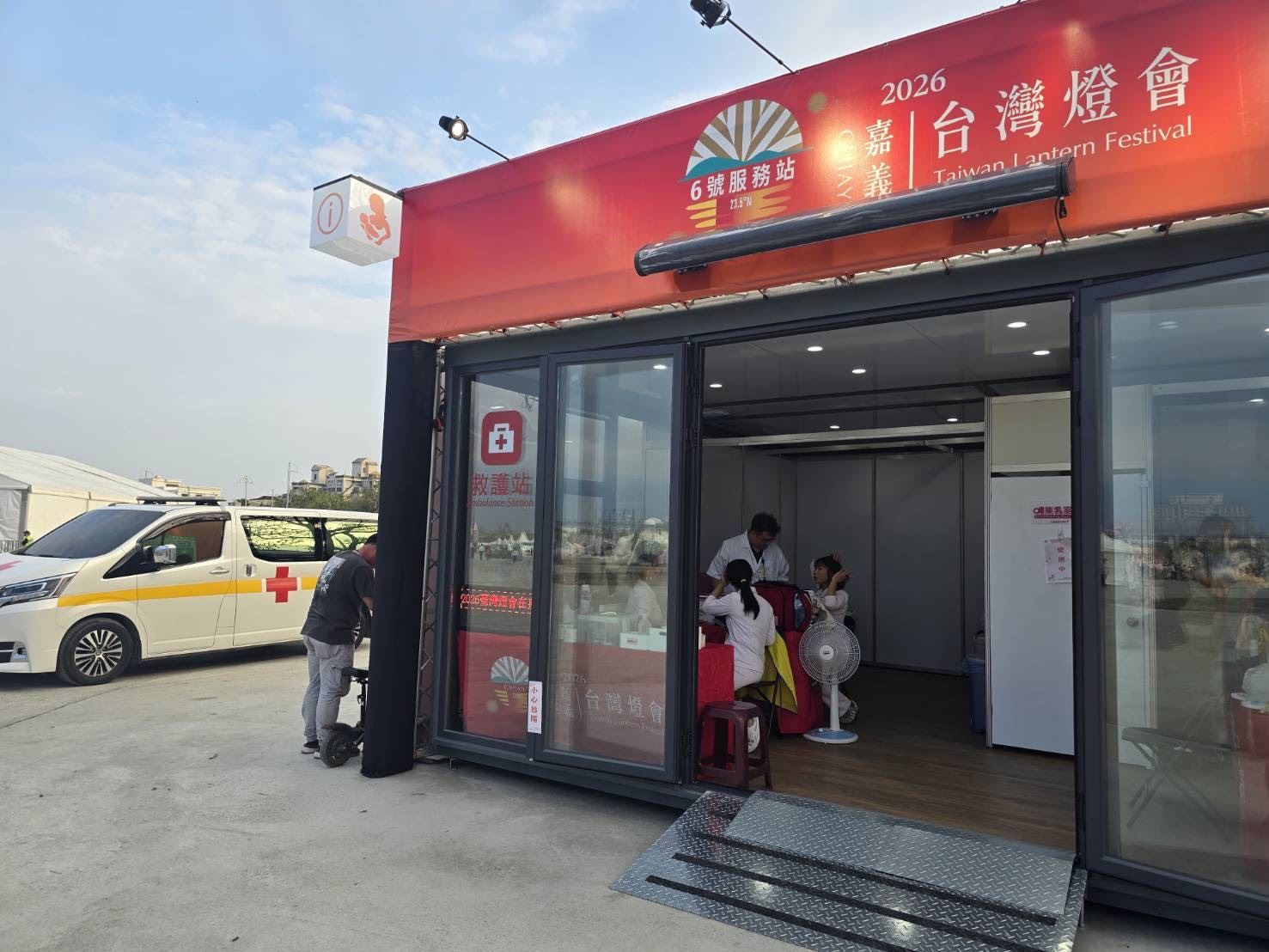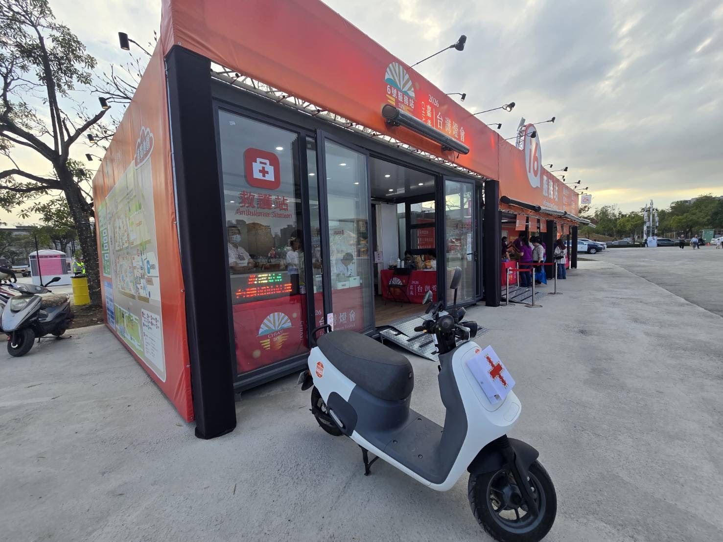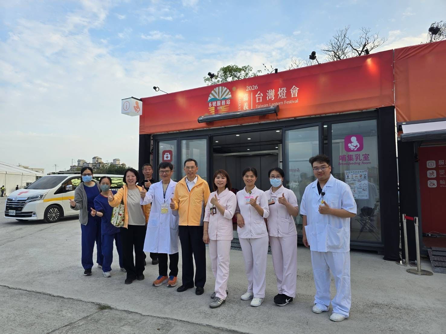 燈會現場共設3處救護站,並整合轄內4家急救責任醫院及18鄉鎮市衛生所醫護人力支援,各救護站依大型群聚活動安全管理標準,配置完整醫療設備,包括自動體外心臟電擊去顫器(AED)、血氧與生命徵象監測、氧氣鋼瓶、救護包、止血固定耗材、行動擔架等,為強化突發事故處置能力,每個救護站還配備2輛救護機動車及無線電通訊設備,並建立救護車後送綠色通道,以提升醫療處置效率與量能。