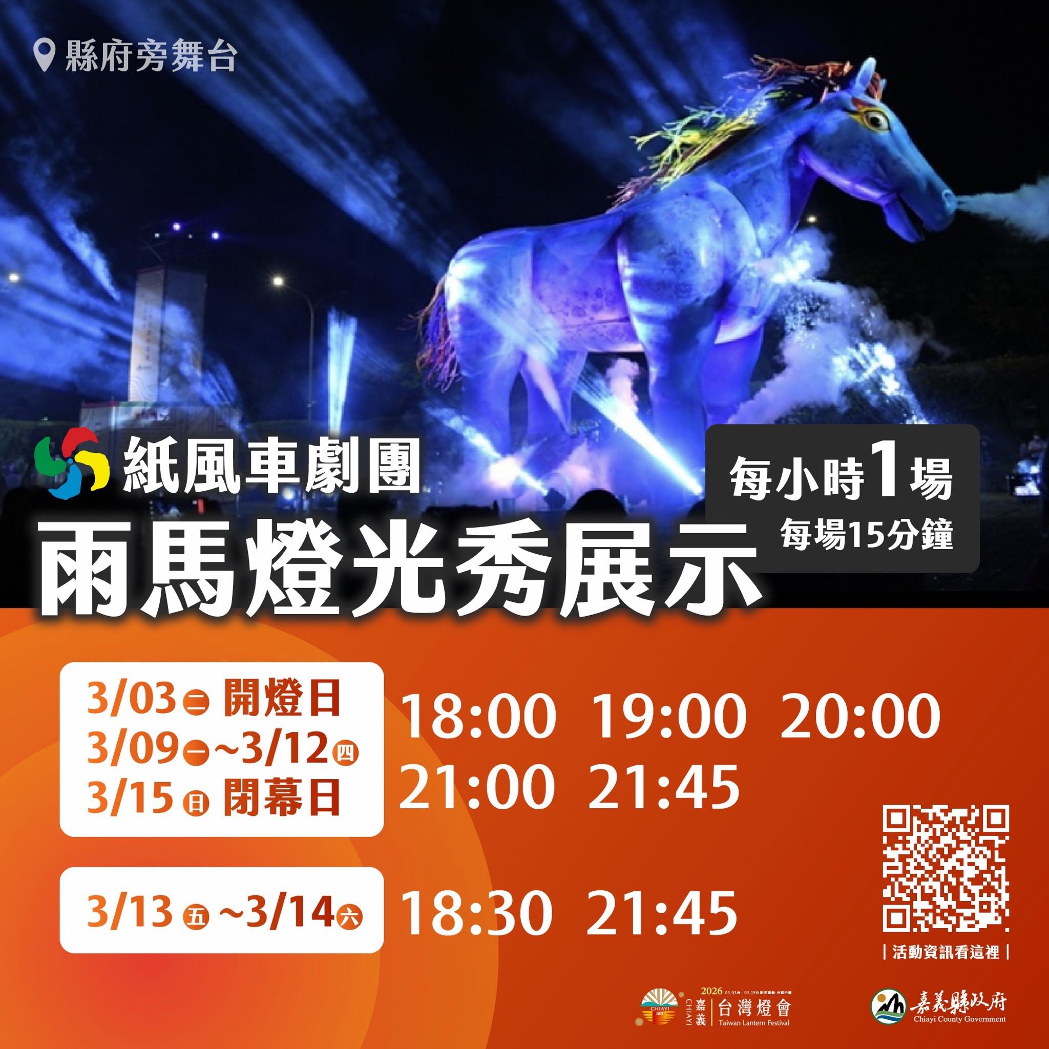 18:30 - 18:45 紙風車|雨馬燈光秀展示