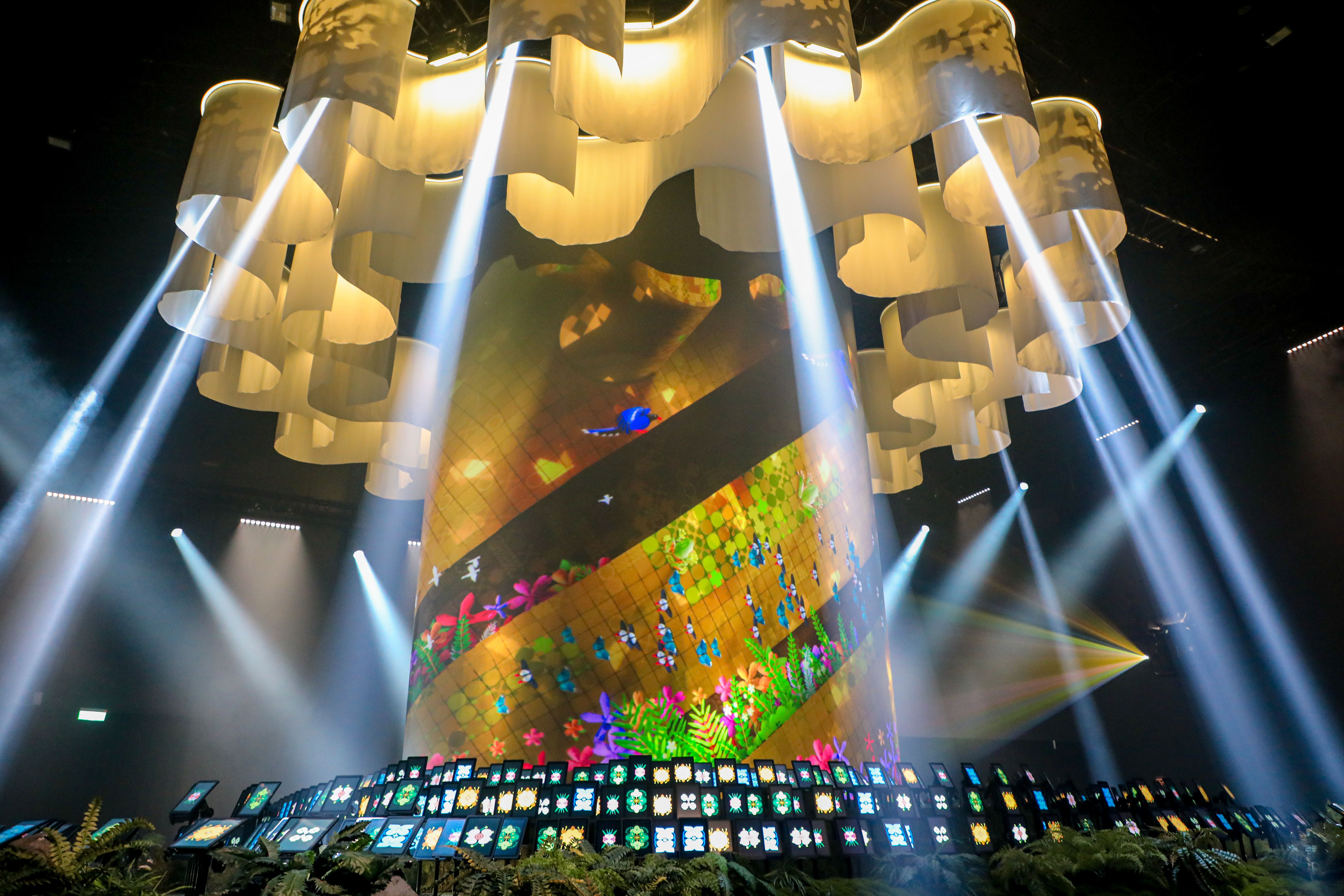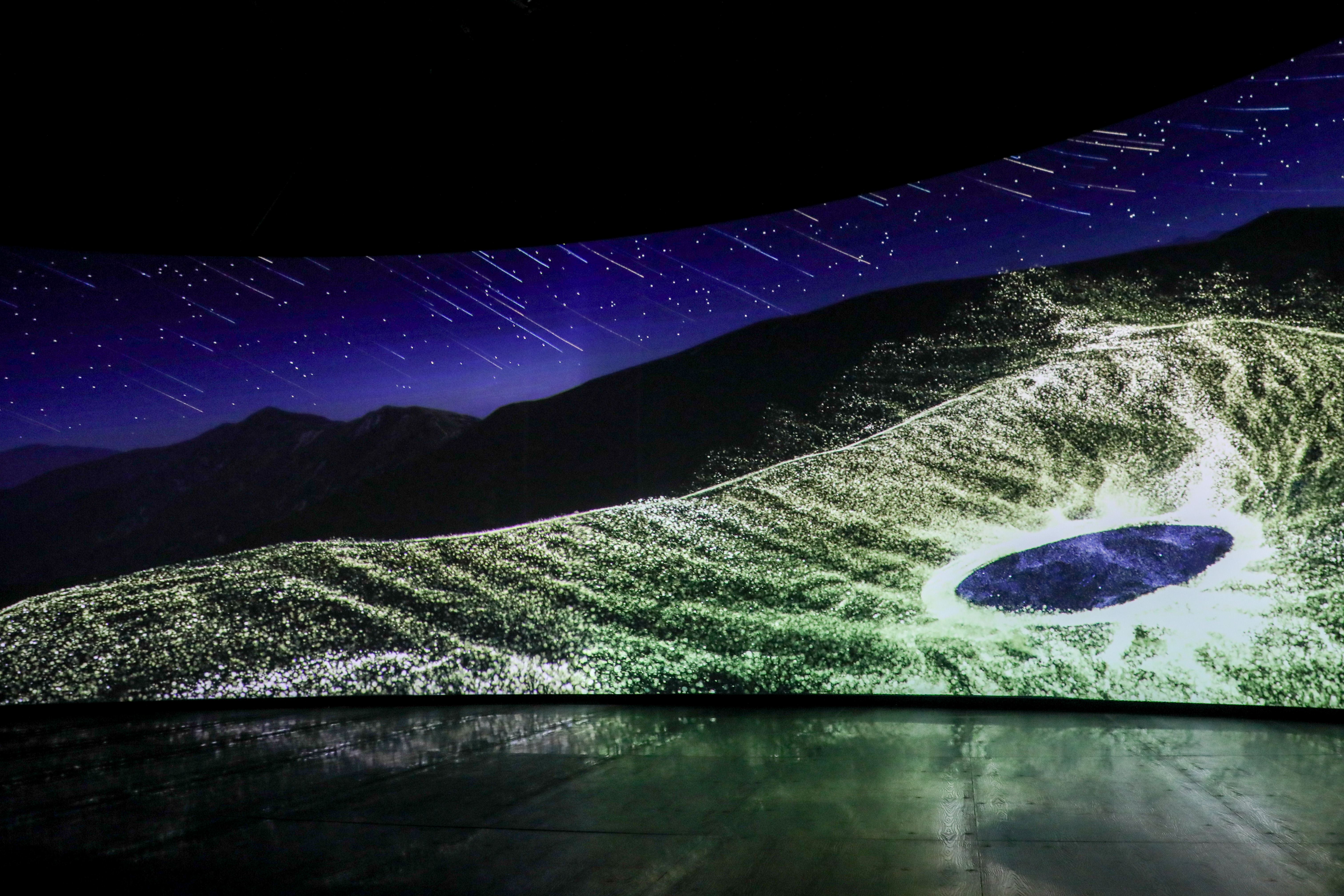 在嘉義重現的TECH WORLD館延續大阪世博核心精神,以沉浸式展演規劃「生命」、「自然」、「未來」3大劇場,包含以機械花展現生命力量的「生命劇場」、以4K投影技術訴說玉山故事的「自然劇場」,以及結合超長型Mini LED螢幕與立體影像技術的「未來劇場」,引領參觀者走入對未來生活的想像。
