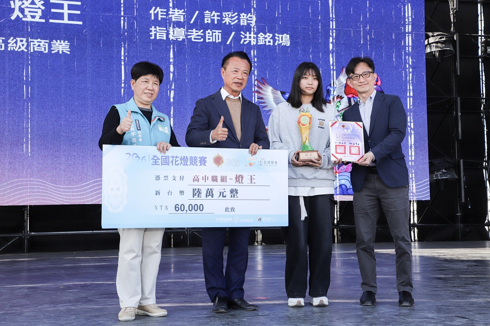 嘉義県政府は本日11日、「2026台湾ランタンフェスティバル in 嘉義」全国ランタンコンテストの表彰式を開催した。翁章梁県長が出席し、受賞者を祝福した。各部門のランタン王や、太保国中の視覚錯視作品「扭頭馬面-馬盯尼」などがSNSで大きな反響を呼び、コンテストエリアはフェスティバルに華やかな彩りを添えた。