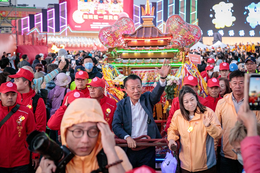 웡 현장은 1년 동안 준비한 축제가 비로 인해 어려움을 겪을 뻔했다고 말했다. 그는 시베이 륙흥궁, 신강 봉천궁, 포쯔 패천궁을 찾아 비가 그치기를 기도했다. 밤에는 비 올 확률이 40%였지만, 오전 11시부터 비가 잦아들기 시작해 오후 1시에 완전히 멈췄다. 오후 퍼레이드는 시원하고 쾌적했으며, 밤에 라이 총통이 점등식을 진행할 때도 날씨는 매우 좋았다.