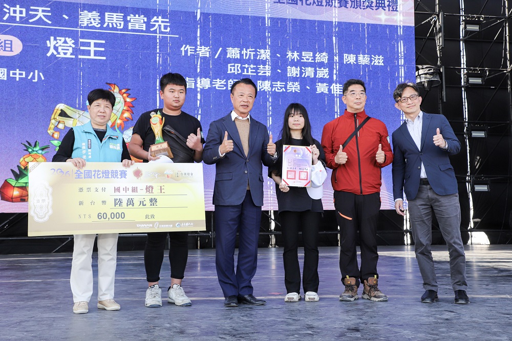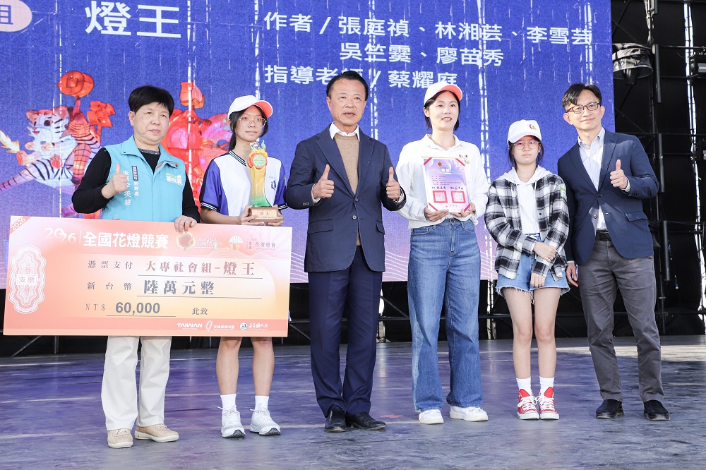 자이현 정부는 오늘(11일) 「2026 타이완 등불축제 in 자이」 전국 등불 경연대회 시상식을 개최했다. 웡장량 현장은 시상식에 참석해 모든 수상자들에게 축하를 전했다. 각 부문 등왕과 태바오중학교의 시각 착시 작품 「머리를 돌린 말 얼굴 – 마딩니」(扭頭馬面-馬盯尼) 등이 SNS에서 큰 화제를 모으며, 경연 등불구역은 축제에 풍성한 빛을 더했다.